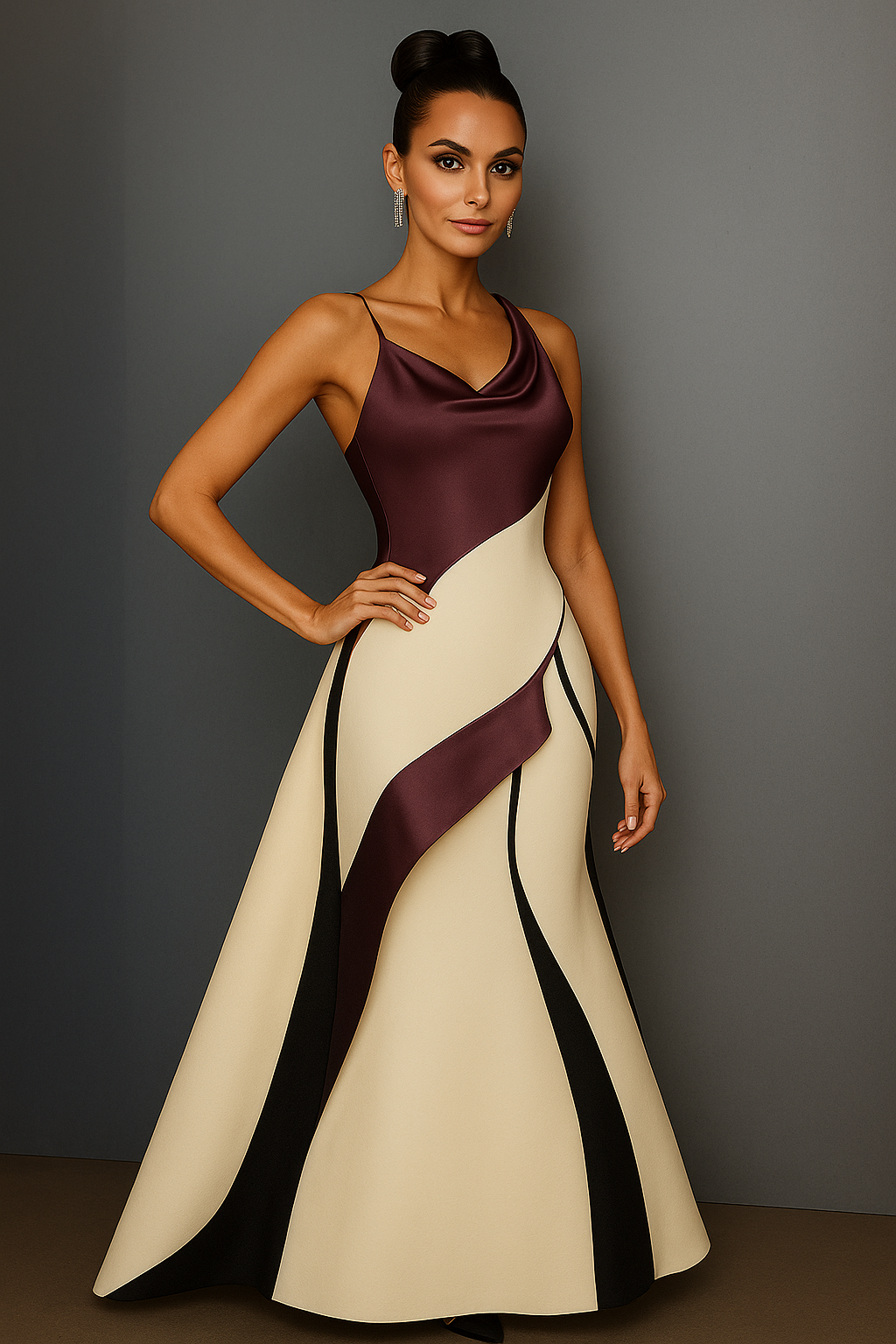 Una de las formas más valiosas en las que utilizo la inteligencia artificial es para generar distintas opciones de mis diseños según la gama cromática o la textura del tejido. A partir de un figurín original o una idea base, puedo visualizar cómo cambia la fuerza del diseño si se presenta en tonos neutros, intensos, metalizados o en combinaciones menos convencionales.