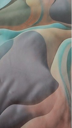 En esta colección, la imagen se convierte en tejido. Utilizo la técnica de sublimación para estampar fotografías cuidadosamente seleccionadas —como texturas de mármol, hielo, minerales o superficies naturales— sobre tejidos de alta calidad.
