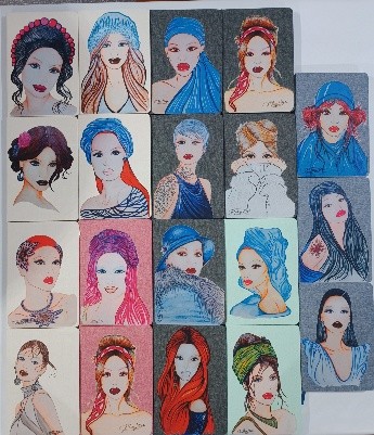 Cada prenda y cada libreta de esta colección es una pequeña obra de arte. He pintado personalmente los retratos en acuarela, dando vida a rostros femeninos que transmiten sensibilidad, fuerza y belleza interior. Son ilustraciones únicas que convierten lo cotidiano en algo especial.