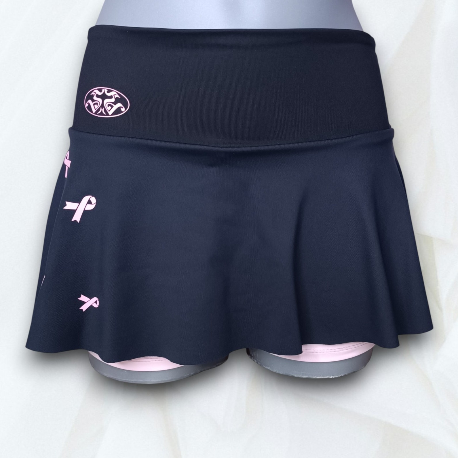 Apoya la lucha contra el cáncer con estilo. Nuestra falda de pádel/tenis en elegante negro combina diseño y compromiso: con lazos rosas que aportan un toque femenino y la malla interior rosa palo que garantiza comodidad y libertad de movimiento. Cada compra colabora directamente con iniciativas de ayuda contra el cáncer, haciendo que tu elección sea tan significativa como estilosa.
